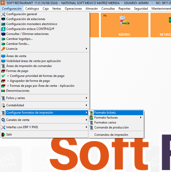 Para configurar un logotipo en los tickets de venta en Soft Restaurant, sigue estos pasos: Valida los formatos de impresión que estas utilizando: Ingresa al menu "Configuración" y "Configuración de estaciones", posterior a ello selecciona "impresoras ...