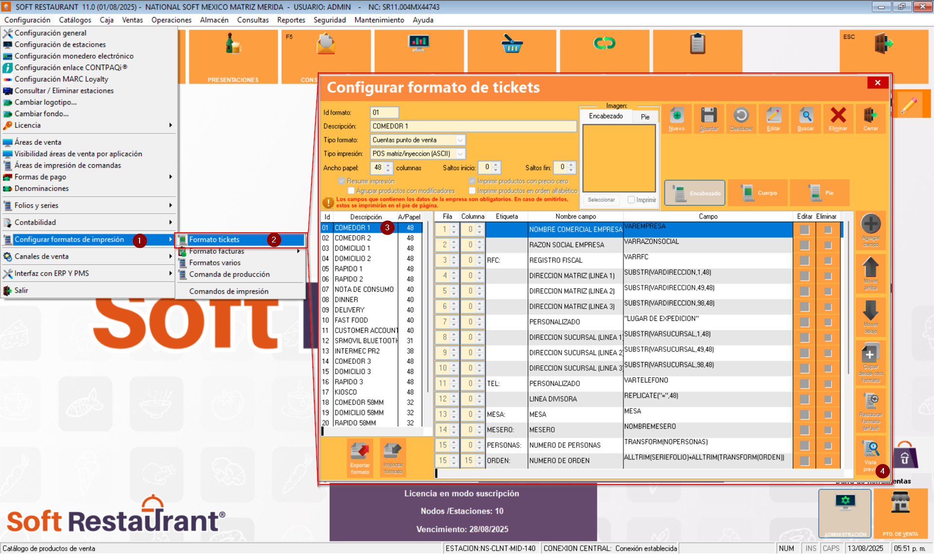 Posterior a realizar esta verificación es necesario validar los campos que hayan sido modificados en los diversos formatos de ticket según el servicio en el cual se haya presentado el error. Esto se valida en "Configuración -> Configurar formatos de impresión -> Formato de tickets".
