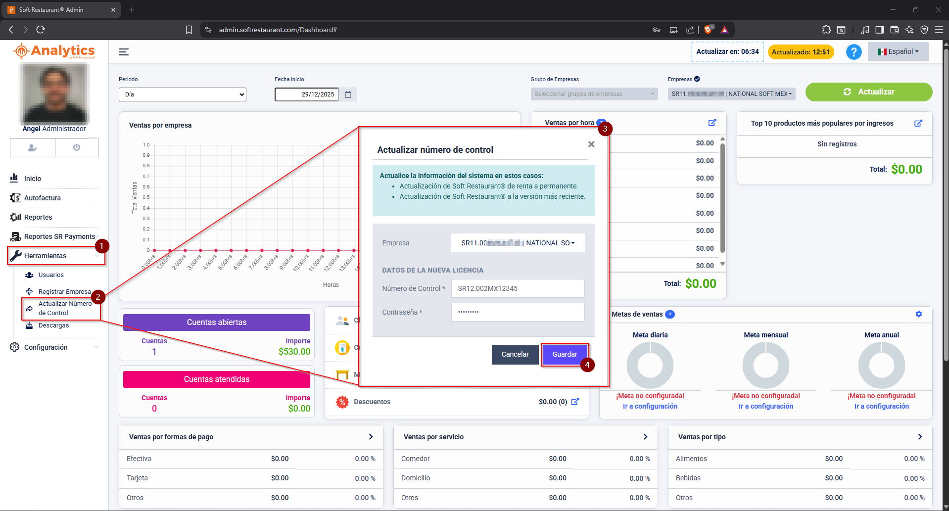 Esta guía describe el procedimiento para actualizar el número de control en Analytics 2.0 cuando se realiza una actualización de Soft Restaurant® desde versiones anteriores a versiones más recientes.