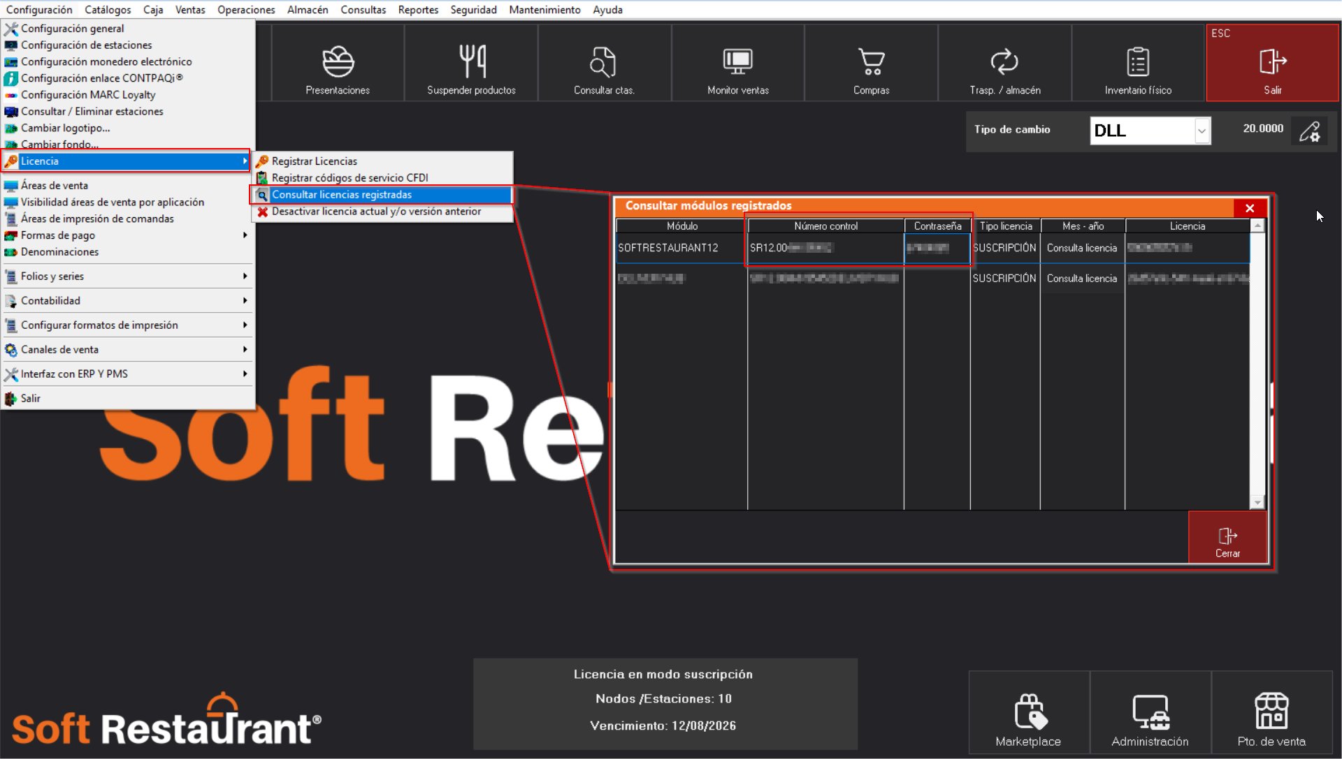 - Soft Restaurant → Configuración → Licencias → Consultar licencias registradas