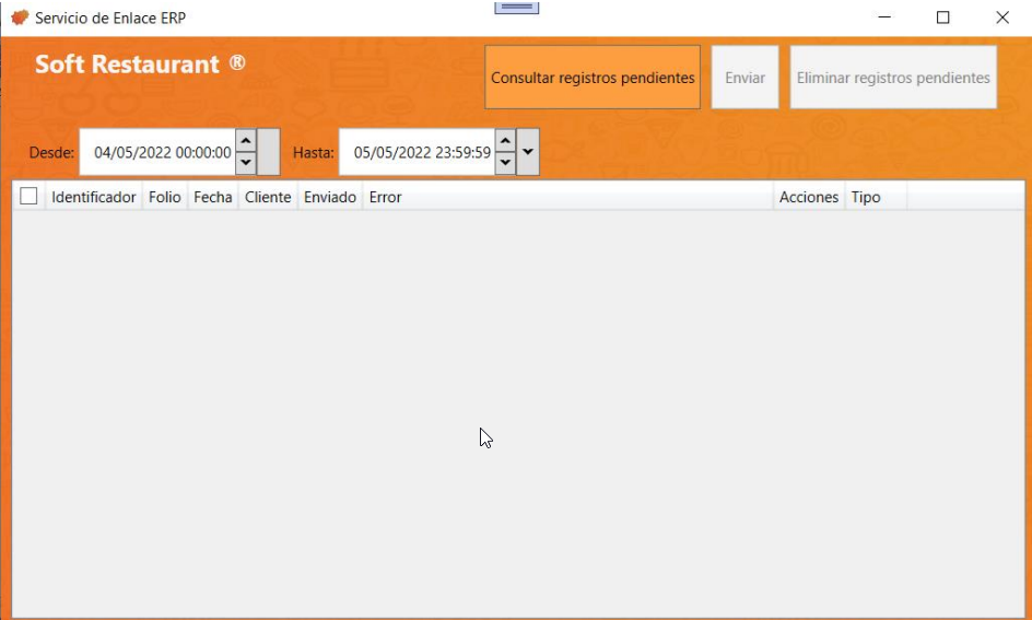 - Eliminar registros pendientes: Si por alguna razón se capturo algún registro de forma errónea y no permite su envío se recomienda eliminarlo de los registros pendientes o de lo contrario siempre el enlace estará intentando enviarlo sin éxito.